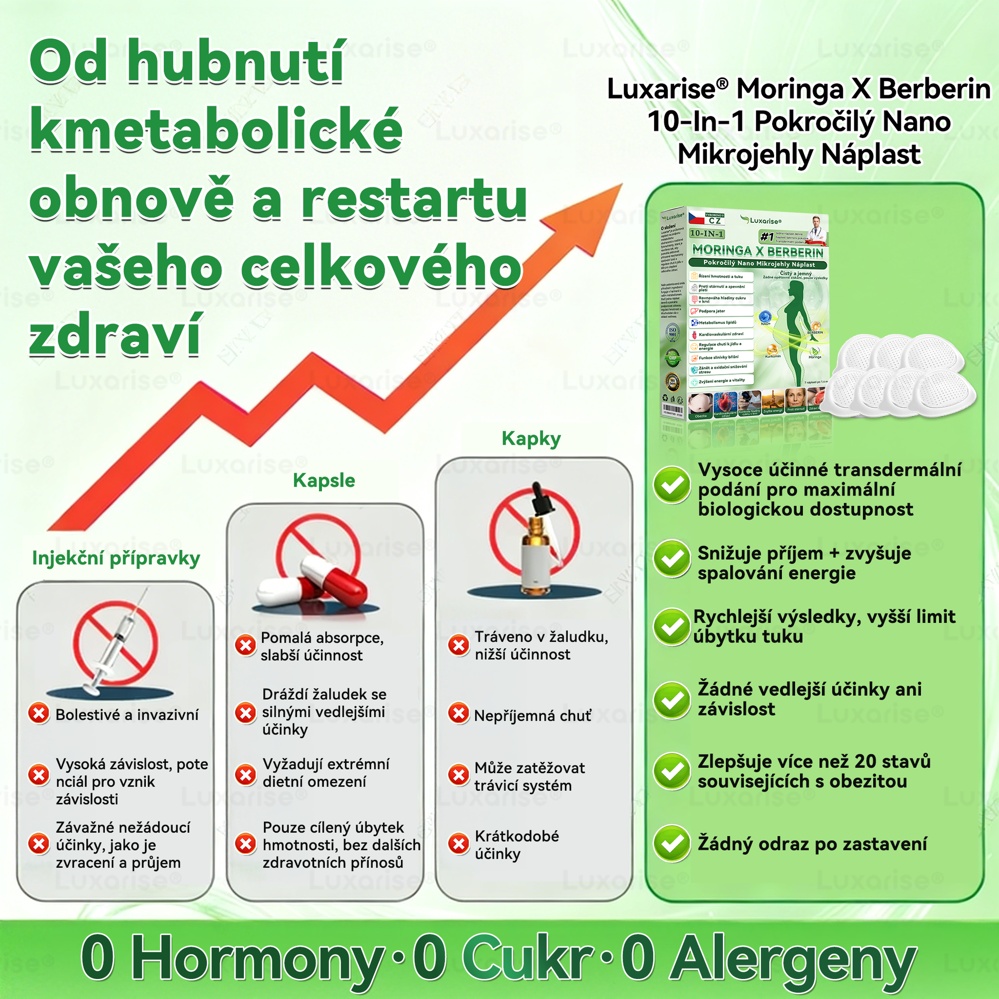 𝗟𝘂𝘅𝗮𝗿𝗶𝘀𝗲® MORINGA X BERBERIN 10-IN-1 Pokročilý Nano Mikrojehly Náplast: Komplexní transformace tělesné hmotnosti, regenerace jater, střev a zdraví pokožky